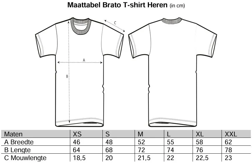 Maattabel-Brato-Heren-T-shirt-nieuw